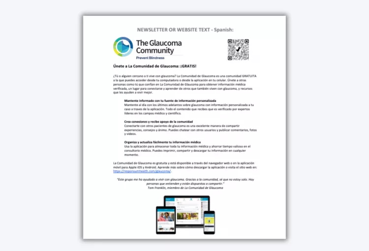 We have created printable flyers, instructions and patient materials for Electronic Medical Records (EMR) – Epic, social media posts with recommended text, PowerPoint slides, and website/newsletter text in English and Spanish that you can share with your patients and clients in your office, clinic, or community to share information about The Glaucoma Community.